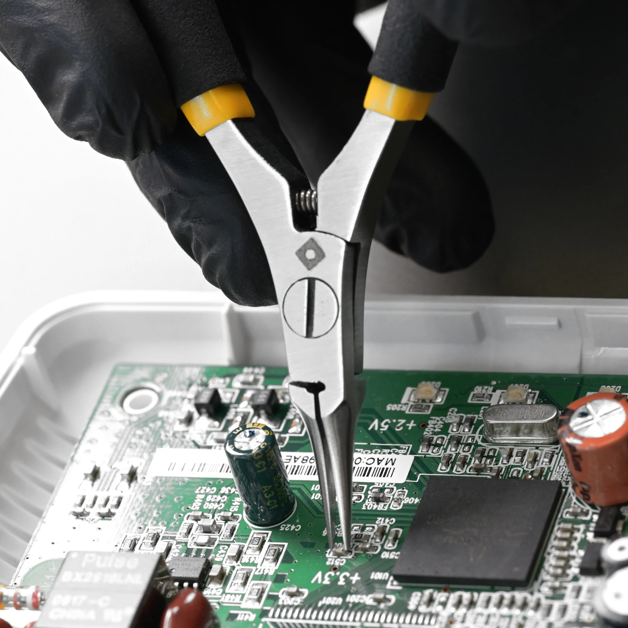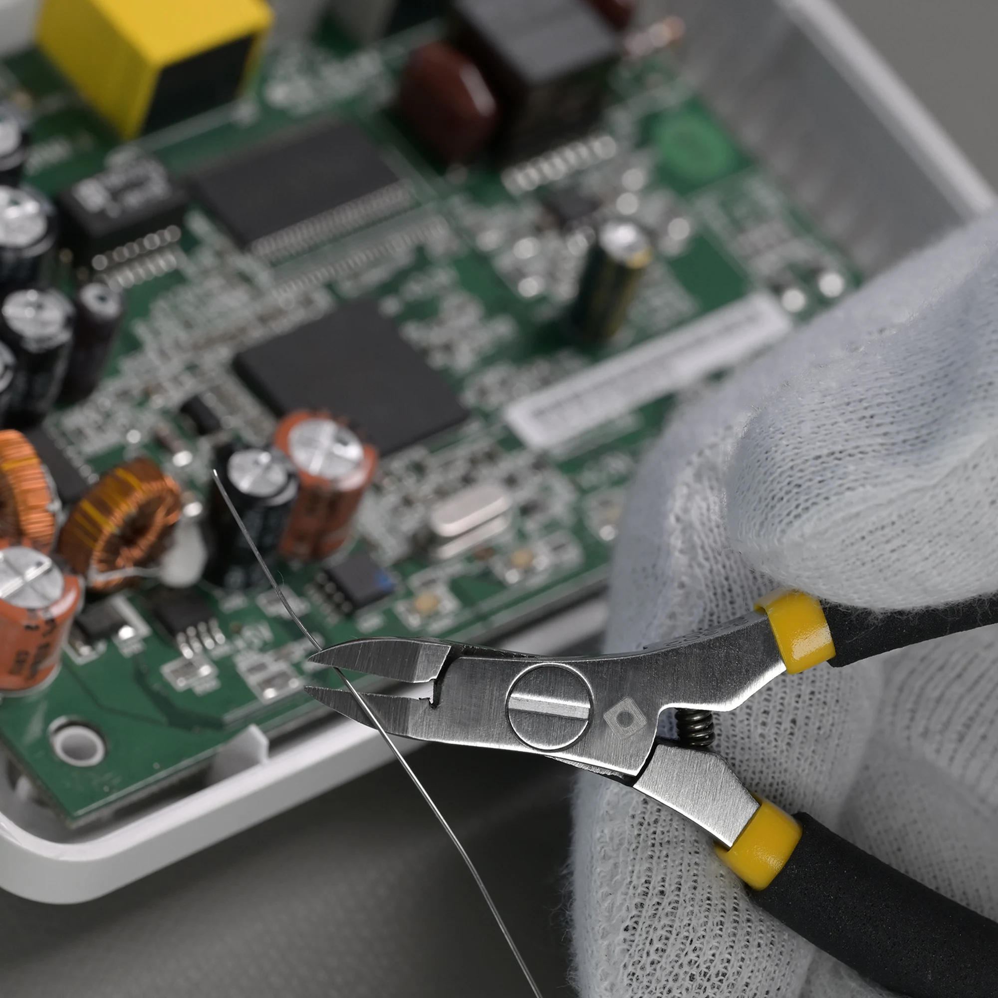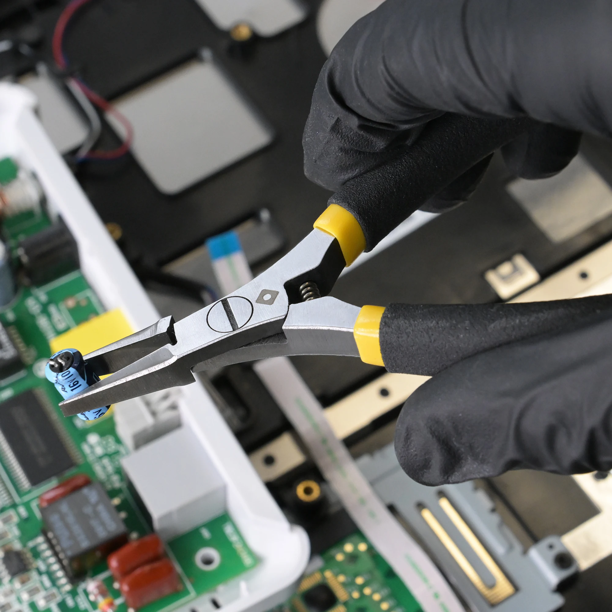 Dieses Set wurde für höchste Präzision bei Arbeiten in Elektronik, Feinmechanik und Laboranwendungen entwickelt. Alle Werkzeuge sind ESD-sicher und schützen empfindliche elektronische Bauteile zuverlässig vor statischer Aufladung. Die Schneid- und Greifflächen bestehen aus hochwertigem Carbonstahl und sind matt poliert, um störende Lichtreflexe zu vermeiden. Unterschiedliche Kopfformen ermöglichen den Einsatz in schwer zugänglichen Bereichen und sorgen für saubere, bündige Schnitte sowie sicheres Greifen kleinster Bauteile. Ergonomische, rutschfeste Griffe gewährleisten komfortables und ermüdungsfreies Arbeiten, auch bei längeren Einsätzen. Dank der kompakten Bauweise und der hohen Fertigungsqualität ist dieses Set die ideale Lösung für alle Anwendungen in der Elektronikfertigung, Leiterplattenbestückung, im Modellbau und in Laboren.