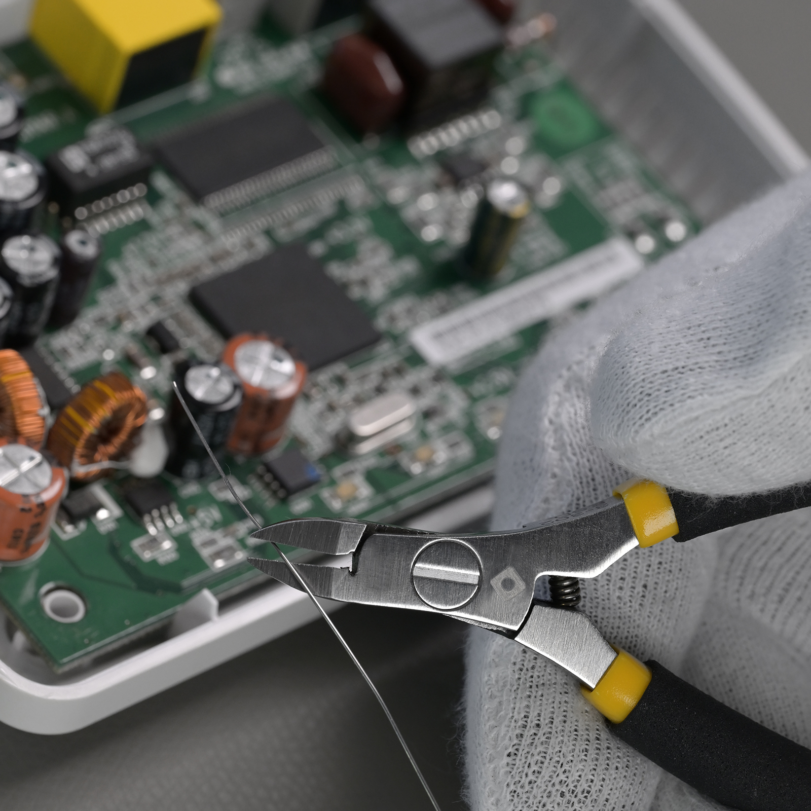 • Der Micro-Seitenschneider mit 8 mm Kopfbreite ist die ideale Lösung für präzise Schneidarbeiten in Elektronik, Modellbau und Feinmechanik. Dank seines extrem schlanken Kopfes erreicht er auch schwer zugängliche Stellen mühelos und ermöglicht einen absolut sauberen, bündigen Schnitt. Die Schneiden sind aus hochwertigem Carbonstahl gefertigt und garantieren eine lange Lebensdauer sowie höchste Schnittqualität. Die matt polierte Oberfläche verhindert störende Lichtreflexe, während die ergonomischen, rutschfesten Griffe für komfortables und sicheres Arbeiten sorgen. Zusätzlich ist der Seitenschneider ESD-sicher und schützt empfindliche elektronische Bauteile vor statischer Aufladung. Mit einer Schneidleistung bis Ø 0.8 mm (Kupferdraht) ist er perfekt für alle Anwendungen in der Elektronikfertigung, Leiterplattenbestückung, im Modellbau und in Laboren geeignet.